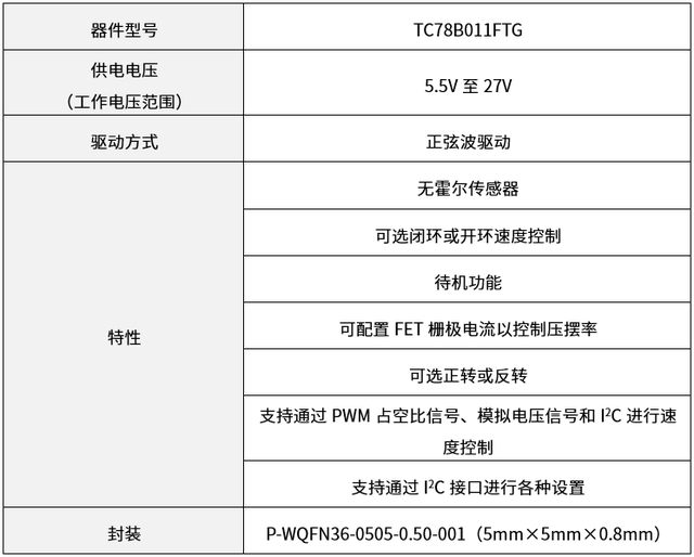 同時東芝還批量生產采用無霍爾傳感器控制的方波驅動方式的TC78B009FTG。用戶可以根據(jù)自己的電機驅動方式選擇合適的產品。