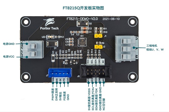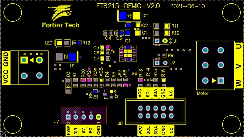 FT8215Q開(kāi)發(fā)板是為開(kāi)發(fā)者而設(shè)計(jì)的專(zhuān)用測(cè)試板,開(kāi)發(fā)板留有電源接線端、U/V/W接線端、仿真器插座、各功能接口。開(kāi)發(fā)者可仿真調(diào)試電機(jī)和通信燒錄IC,以及測(cè)試PWM/VSP調(diào)速、正反轉(zhuǎn)控制、FG測(cè)速等功能。