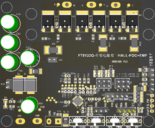 FT8215Q高度集成電機(jī)控制所需部件。內(nèi)置驅(qū)動(dòng)MOS,外圍元器件少。芯片內(nèi)置EEPROM模塊,可配置電機(jī)參數(shù)、FOC參數(shù)、啟動(dòng)和調(diào)速參數(shù)等。