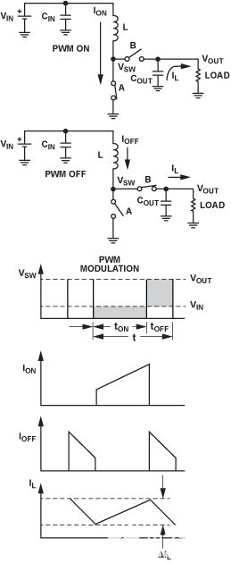 請注意,開關(guān)穩(wěn)壓器操作可以是連續(xù)的,也可以是不連續(xù)的。在連續(xù)導通模式(CCM)下工作時,電感電流永遠不會降至零;在非連續(xù)導通模式(DCM)下工作時,電感電流可能降至零。電流紋波,顯示為 Δ我L在圖2中,使用Δ我L = (V在× 噸上)/L. 平均電感電流流入負載,而紋波電流流入輸出電容。