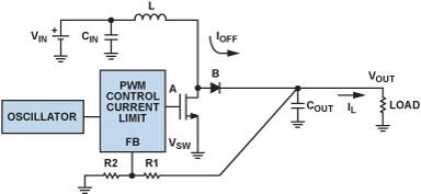 電流限制:升壓轉(zhuǎn)換器通常指定峰值電流限制,而不是負載電流。請注意,兩者之間的差異越大V在和V外,可用負載電流越低。峰值電流限值、輸入電壓、輸出電壓、開關(guān)頻率和電感值都設(shè)置了最大可用輸出電流。
