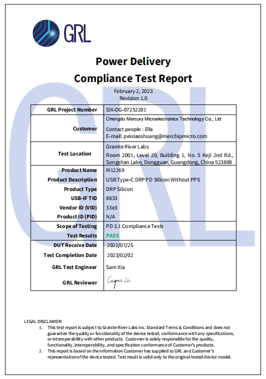 近日,水芯電子旗下芯片M12269正式通過了USB-IF協(xié)會(huì)官方PD3.1合規(guī)性監(jiān)測認(rèn)證,并入選USB-IF集成商產(chǎn)品列表清單。至此,MERCHIP水芯電子M12269成為業(yè)界第一顆獲得PD3.1雙向認(rèn)證的電源SOC芯片。在USB-IF官網(wǎng),可以查詢該芯片的認(rèn)證TID號(hào)為8833。