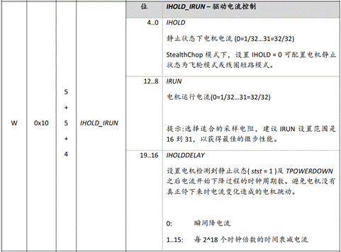 *IHOLD_IRUN 0X10:電流寄存器-設(shè)置合適的電流,設(shè)置電流大小直接影響電機(jī)的負(fù)載能力。設(shè)定電流改變后sgt值也需要調(diào)節(jié)。