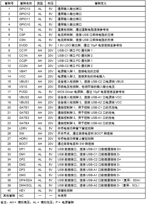 2-7節(jié)雙向升降壓型鋰電充放電管理IC,內置快充協(xié)議 |