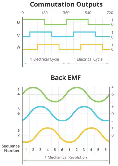 圖 2:換向輸出和電機(jī)相位(圖片來源:CUI Devices)