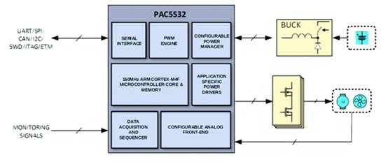 Qorvo PAC5532電源控制器適用于廣泛的高速消費(fèi)產(chǎn)品、工業(yè)和汽車中的電機(jī)控制等應(yīng)用,包括電池供電電動(dòng)工具、電動(dòng)自行車和輕型混合動(dòng)力汽車等。PAC5532適用于48~120VDC系統(tǒng),集成有150MHz Arm Cortex-M4F 32位內(nèi)核,具有全面且可配置的電源管理和驅(qū)動(dòng)功能(參見圖6)。