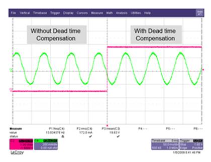 要管理這種額外的噪聲,工程師可以利用諧振控制器集成死區(qū)時間補償,以便控制相電流中的諧波分量,從而緩解因死區(qū)時間導(dǎo)致的電流失真,如圖 5 所示。