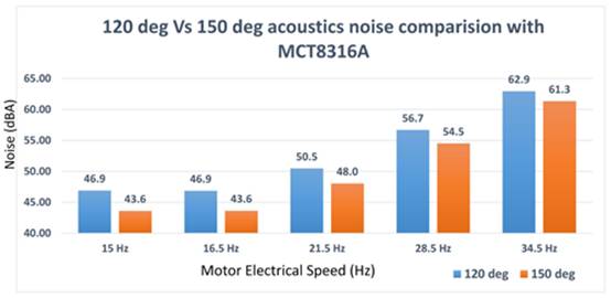為了應(yīng)對這些挑戰(zhàn)并提高聲學(xué)性能,工程師可以構(gòu)建能夠在 120 度梯形換向和 150 度梯形換向之間動態(tài)切換的電機驅(qū)動器系統(tǒng)。這種動態(tài)調(diào)制可以改善 BLDC 電機控制期間的整體聲學(xué)性能。