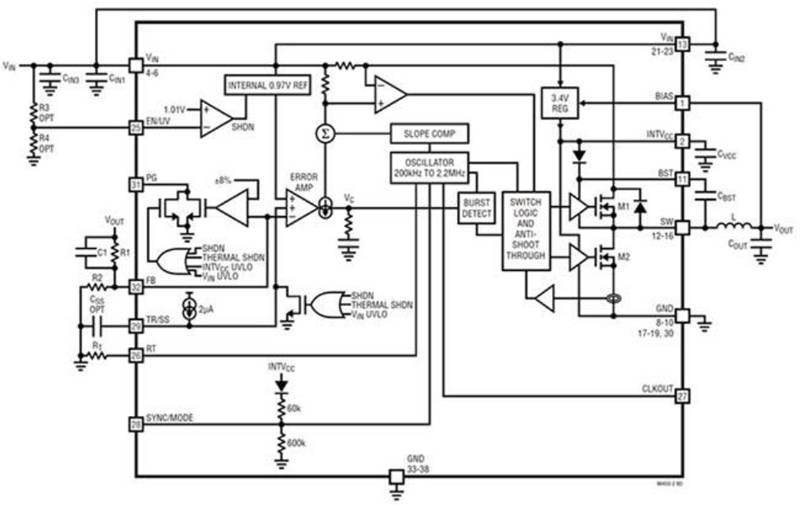 圖 1:Silent Switcher 降壓穩(wěn)壓器的方框圖展示了它們的復(fù)雜度,但無(wú)法顯示用于實(shí)現(xiàn)重大性能改進(jìn)的技術(shù)細(xì)節(jié)。(圖片來(lái)源:Analog Devices)