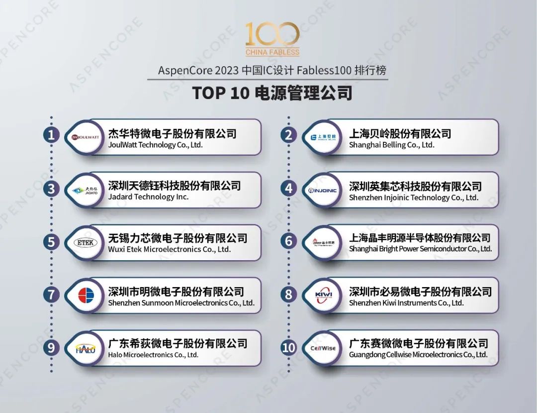 入選2023年中國(guó)IC設(shè)計(jì)Fabless100排行榜的Top 10 電源管理芯片(PMIC)公司