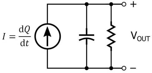 VOUT=1C∫dQdt dt=QCVOUT=1C∫dQdt dt=QC