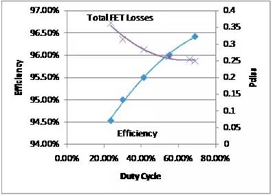 圖 11—總損耗與效率和占空比的關系