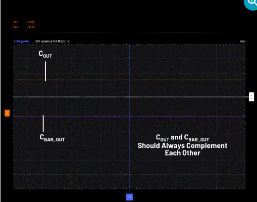 觀察示波器界面上A和B輸入信號相應(yīng)的C輸出和CBAR輸出。