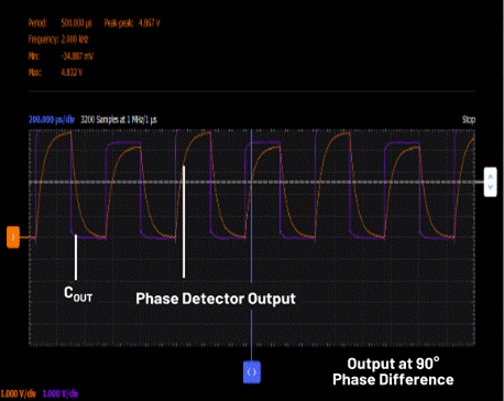 當(dāng)XOR門鑒相器用于PLL系統(tǒng)時(shí),它通常鎖定在相位檢測范圍中間的90°相位差附近。在90°時(shí),XOR具有50%占空比的方波輸出,輸出頻率是輸入頻率的兩倍。方波占空比根據(jù)兩個(gè)輸入信號的相位差發(fā)生變化。XOR門的輸出通過低通濾波器產(chǎn)生的模擬電壓與兩個(gè)信號之間的相位差成正比。它需要對稱的方波輸入。如果一個(gè)輸入的占空比與另一個(gè)輸入的占空比略有不同,則低通濾波輸出將會偏移90°相位差時(shí)的理想中間范圍。