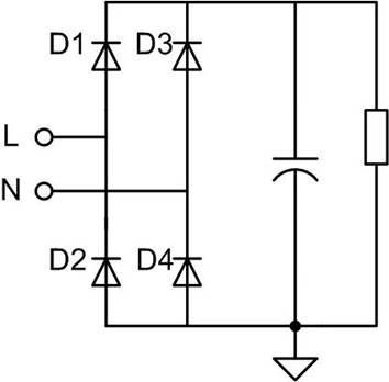 如圖2是開關(guān)電源輸入端典型的整流濾波電路,在L對N為正的半周,D1和D4導(dǎo)通,初級地電位接近于N線對大地電壓,而在L對N為負(fù)的半周,D3和D2導(dǎo)通,通過D2相當(dāng)于將初級地連接到L線上。所以若將示波器探頭地夾連接到初級地,在L對N為負(fù)的半周使L線對大地短路,電網(wǎng)有足夠大的容量,會造成線路、設(shè)備燒毀等嚴(yán)重事故。為此一些人斷開示波器供電地線進(jìn)行測量,避免短路,但是這種方法是錯(cuò)誤的、不可取的。通用示波器是按照接地的情況設(shè)計(jì),無地線使用連接到對大地存在較高共模電壓的設(shè)備上時(shí),示波器裸露的金屬部件會帶電!會危及生命財(cái)產(chǎn)安全,在儀器的說明書上安全相關(guān)章節(jié)也有說明。用戶應(yīng)當(dāng)閱讀儀器設(shè)備的說明書,并按正確的方法使用。