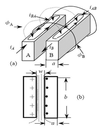 當(dāng)回流導(dǎo)體靠近時(shí),兩根導(dǎo)線的場向量將相加。在兩導(dǎo)體相鄰之間,磁場方向相同而加強(qiáng);兩導(dǎo)線之外側(cè),磁場相反而抵銷,磁場很弱,或?yàn)榱。在?dǎo)體內(nèi)部,由兩導(dǎo)體外側(cè)向內(nèi)逐漸加強(qiáng),到達(dá)導(dǎo)體的內(nèi)表面時(shí)磁場最強(qiáng)。