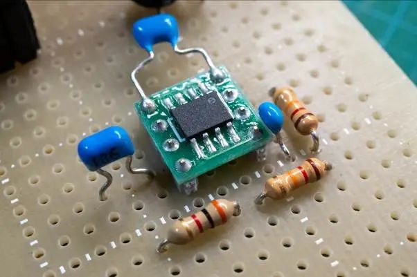 我們根據(jù)技術(shù)規(guī)格書中的應(yīng)用電路,將電子器件焊接到電路板上。由于輸出電壓由R1和R2的分壓電阻之比決定,因此我們將R1設(shè)置為12kΩ,將R2設(shè)置為3kΩ,其他部件使用與技術(shù)規(guī)格書中相同的元器件。