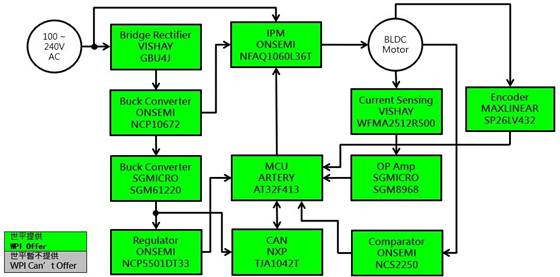 圖示2-大聯(lián)大世平基于Artery產(chǎn)品的高壓直流無(wú)刷電機(jī)驅(qū)動(dòng)方案的場(chǎng)景應(yīng)用圖
