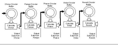上圖所示的數(shù)字音頻效果依賴于延遲線來實(shí)現(xiàn)。在描述完整的效果系統(tǒng)時(shí),需要多個(gè)延遲線。改變?cè)O(shè)計(jì)中使用的延遲長(zhǎng)度會(huì)改變音頻效果的質(zhì)量。