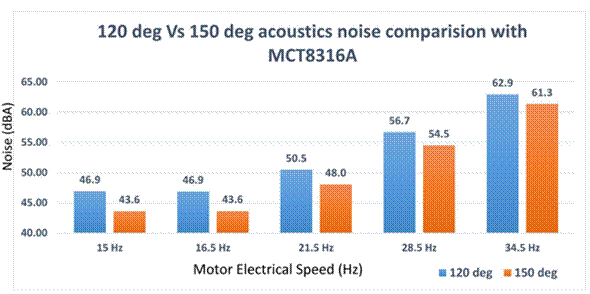 為了應(yīng)對(duì)這些挑戰(zhàn)并提高聲學(xué)性能,工程師可以構(gòu)建能夠在 120 度梯形換向和 150 度梯形換向之間動(dòng)態(tài)切換的電機(jī)驅(qū)動(dòng)器系統(tǒng)。這種動(dòng)態(tài)調(diào)制可以改善BLDC 電機(jī)控制期間的整體聲學(xué)性能。