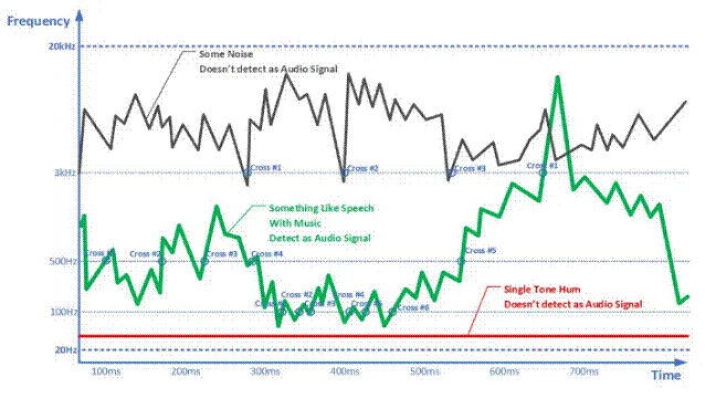 人耳可以聽到的頻率范圍約為 20 Hz 至 20,000 Hz。該范圍可以包括單音,例如變壓器嗡嗡聲或來自無線電系統(tǒng)的白噪聲。這并不是說這些聲音在音頻系統(tǒng)中是理想的。高強(qiáng)度的此類聲音會(huì)損害聽力。人類語音、音樂和自然聲音具有不斷變化的不同頻率。因此,音頻檢測器應(yīng)該記錄頻率變化并根據(jù)這些變化挑選有用的音頻信號(hào)。