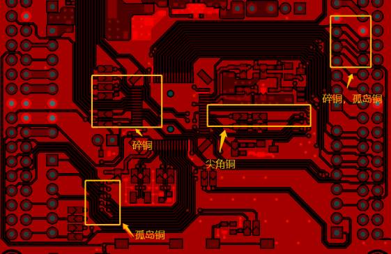 但需要注意的是我們?cè)阡佋O(shè)整版銅皮的時(shí)候需要把“沒(méi)用”的銅皮給挖掉,比如一些碎銅,尖角銅皮,孤島銅等等,這些銅皮不僅提供不了屏蔽的效果,還會(huì)影響信號(hào)質(zhì)量。