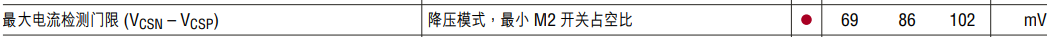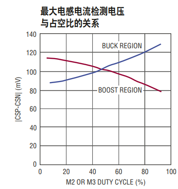 VRSENSE(MAX,BOOST,MAX) 是最大占空比條件下升壓區(qū)中的最大電流檢測(cè)電壓 (見 “RSENSE 的選擇和最大電流” 部分)即:VRSENSE(MAX,BOOST,MAX) ≅107mV