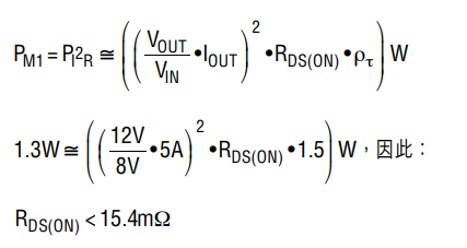 由于升壓區(qū)中的最大 I2R 功率耗散出現(xiàn)在 VIN 最小之時(shí),因此我們可以采用下式來確定升壓區(qū)的最大可容許 RDS(ON):