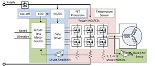 圖 1:典型的無傳感器 BLDC 電機(jī)系統(tǒng)