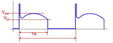 圖 1 說(shuō)明了正常旋轉(zhuǎn)期間的輸出電壓形狀并顯示了 EMF 效應(yīng):