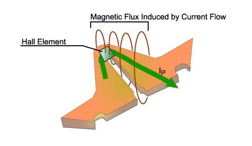 ACS71x 系列基于霍爾效應(yīng)的電流傳感器 IC 通過感測電流經(jīng)過霍爾元件附近時產(chǎn)生的磁場來測量電流(見圖 1)。它們直接測量該磁場,無需使用磁集中器,而磁集中器是其他磁性設(shè)備的常見功能(例如,用于 ACS75x 系列電流傳感器 IC 的 Allegro MicroSystems CA 和 CB 封裝)。