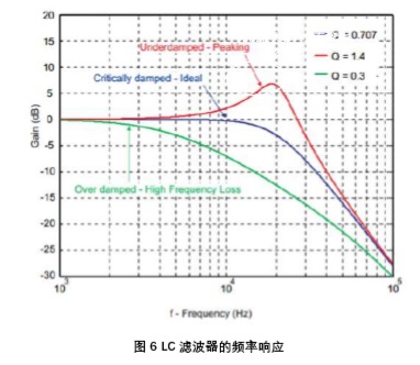 在根據(jù)供電電壓,喇叭負(fù)載,輸出功率等選定好合適的電感后,還需要注意LC濾波器 對(duì)音頻信號(hào)的頻響產(chǎn)生的影響。另外,喇叭阻抗也會(huì)影響濾波器的頻響特性。所以,選擇LC參數(shù)時(shí)也要同時(shí)考慮使用的喇叭阻抗。理想情況下,選擇合適的LC 組成critical damped, 通帶平坦,良好的相位響應(yīng)的濾波器。同時(shí),也需要注意LC濾波器的截止頻率和品質(zhì)系數(shù)Q。