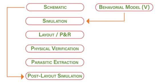 在過去的二十年里,為模擬和數(shù)字電路設(shè)計(jì)創(chuàng)建統(tǒng)一的工具和方法流程的嘗試迄今為止已被證明是徒勞的。然而,人們對模擬流程的基本輪廓達(dá)成了普遍共識,如圖2所示。