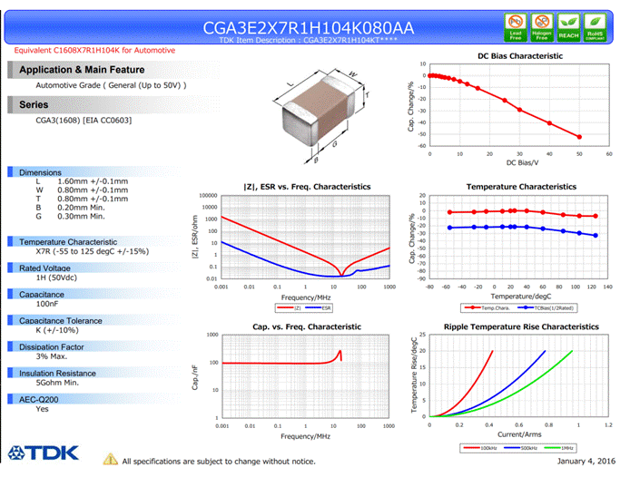 下圖為X7R 材質(zhì)的電容(TDK 0.1UF 50V)的參數(shù)圖