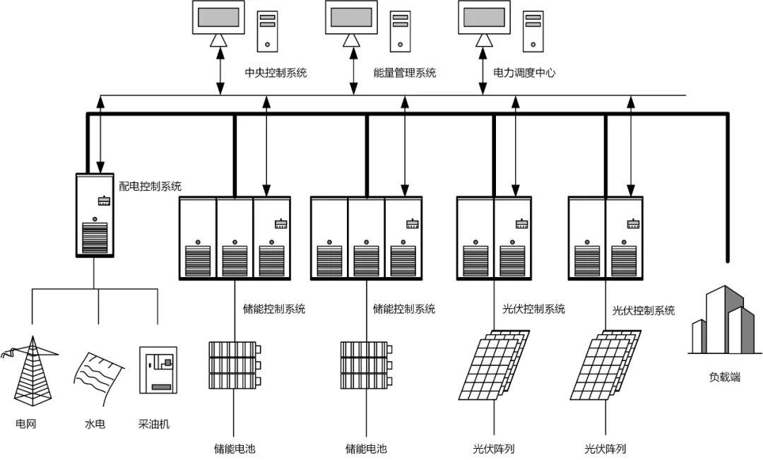 儲能系統(tǒng)是光伏微電網(wǎng)的核心組成,常配合光伏陣列、水電、電網(wǎng)等一起使用。由于電池儲能具有技術相對成熟、容量大、安全可靠、噪聲低、環(huán)境適應性強、便于安裝等優(yōu)點,所以儲能系統(tǒng)常用電池來儲存電能。