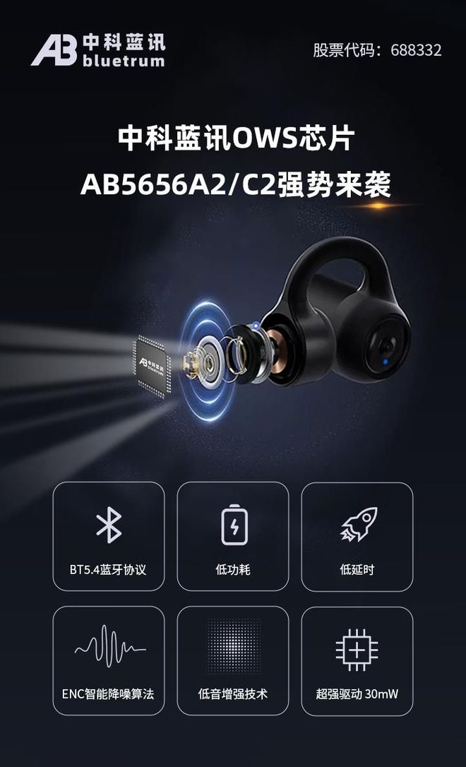| 中科藍(lán)訊推出新款應(yīng)用于無(wú)線藍(lán)牙耳機(jī)的藍(lán)牙音頻芯片AB5656A2/C2,支持藍(lán)牙5.4連接協(xié)議,適用于OWS耳機(jī)。