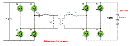 DC-DC級通常采用隔離式拓撲,使用變壓器提供隔離,主要目的是根據(jù)電池的充電狀態(tài)調(diào)節(jié)輸出電壓。盡管可以采用半橋拓撲,但當前主要采用雙有源橋(DAB)轉(zhuǎn)換器方案,例如諧振轉(zhuǎn)換器(比如LLC、CLLC)或相移全橋 (PSFB)轉(zhuǎn)換器。近來,諧振轉(zhuǎn)換器,特別是LLC和CLLC,因其具備多項優(yōu)勢而受到廣泛關注,具體優(yōu)勢包括寬軟開關工作范圍、雙向工作能力以及將諧振電感和變壓器整合到單個功率變壓器中的便利性。
