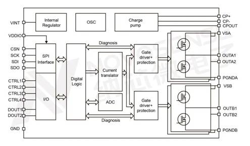 • 內(nèi)置電流傳感器和PWM控制器,16檔(4位)電機(jī)運(yùn)行電流和保持電流配置