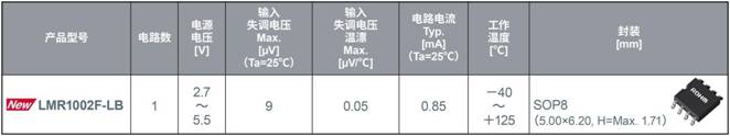 新產(chǎn)品是采用斬波方式*3的ROHM首款零漂移運(yùn)算放大器。以往低失調(diào)電壓運(yùn)算放大器的輸入失調(diào)電壓最高為150µV,而新產(chǎn)品的輸入失調(diào)電壓最高僅為9µV,降幅達(dá)94%。這將不再需要調(diào)整輸入失調(diào)電壓所需的外圍元器件和軟件,有助于減少設(shè)計(jì)工時和降低成本。另外,在-40℃~+125℃的工作溫度范圍內(nèi),輸入失調(diào)電壓溫漂最大僅為0.05µV/℃,是ROHM運(yùn)算放大器中溫漂最低的產(chǎn)品。由于新產(chǎn)品可以在不受溫度等環(huán)境變化影響的前提下準(zhǔn)確地放大傳感器信號,因此有助于對工廠中運(yùn)行的工業(yè)設(shè)備等進(jìn)行高精度控制。其電源電壓范圍寬達(dá)2.7V~5.5V,而且還支持軌到軌輸入輸出*4,因此適用于眾多工業(yè)設(shè)備應(yīng)用。