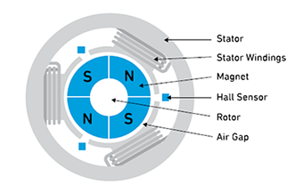 有刷電機(jī)的換向由電刷/換向器接口產(chǎn)生。該界面會(huì)導(dǎo)致摩擦和電弧,隨著時(shí)間的推移會(huì)降低電刷的性能。這種摩擦?xí)a(chǎn)生熱量并縮短電機(jī)壽命。