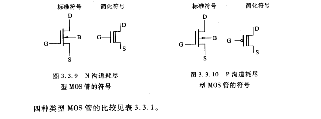 圖3.3.10 是 P 溝道耗盡型 MOS 管的符號。工作時應將它的襯底和源極相連,或將襯底接至系統(tǒng)的電位上。