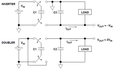 電荷泵核心是依據(jù)電容的儲能特性,通過開關改變電容間的串并關系,從而改變輸出電壓。從下圖中即可理解電荷泵儲能和傳遞能量的過程。核心器件開關和飛跨電容。電荷泵不在局限小功率(幾十,幾百mA)的方案,已有大功率的方案如ADI LTC7821的方案。