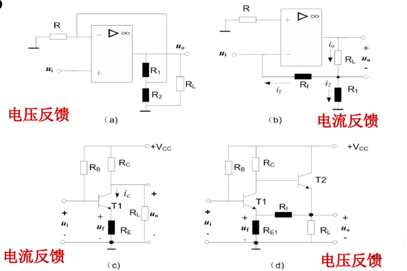 將輸出電壓‘短路’,或令負載R=0,如果此時反饋信號不存在了,即X=0,則是電壓反饋;若反饋信號仍然存在,則是電流反饋。