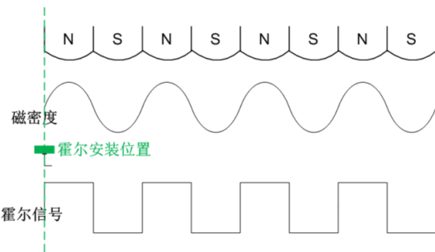 所以當轉(zhuǎn)子旋轉(zhuǎn)的時候,霍爾的輸出會這么變: