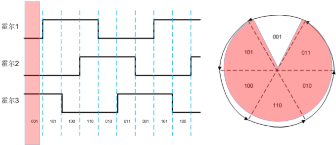 3個霍爾組成的是一個3bits寬的二進制數(shù):101、001、011……
