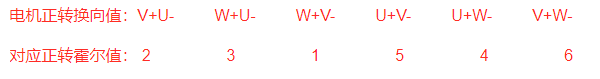 所以我們就做了下面的假設(shè):霍爾傳感器U值是bit2高位,V值是bit1,W值是bit0