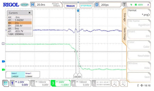 NSI22C12原副邊承受高達(dá)150kV/μs的CMTI時,輸出端仍保持高電平,不會誤觸發(fā)過流保護(hù)