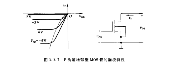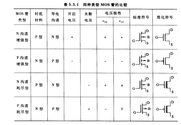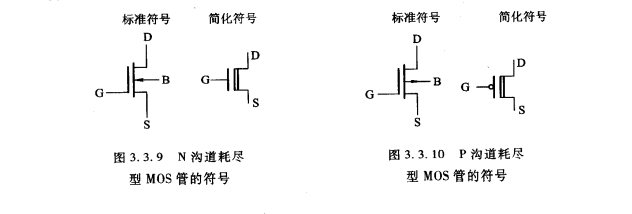 圖3.3.10 是 P 溝道耗盡型 MOS管的符號。工作時(shí)應(yīng)將它的襯底和源極相連,或?qū)⒁r底接至系統(tǒng)的電位上。