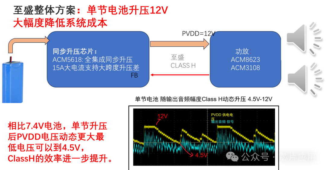 電池成本,電池保護(hù)芯片成本,充電芯片成本等整體成本得到大幅度優(yōu)化;結(jié)合CLASSH,播放時(shí)長得到提升,系統(tǒng)效率上升一個(gè)臺階。