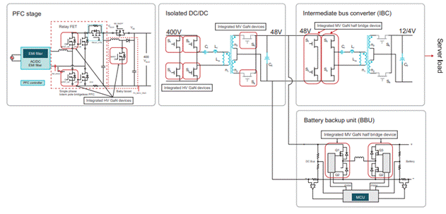 TI例舉了四個(gè)中壓氮化鎵潛在的應(yīng)用爆點(diǎn)。包括在太陽能微型逆變器、電源優(yōu)化器中的DC/DC,服務(wù)器中的電源單元(PSU)、中間總線轉(zhuǎn)換器(IBC)、電池備份單元,電信電源以及電機(jī)驅(qū)動。